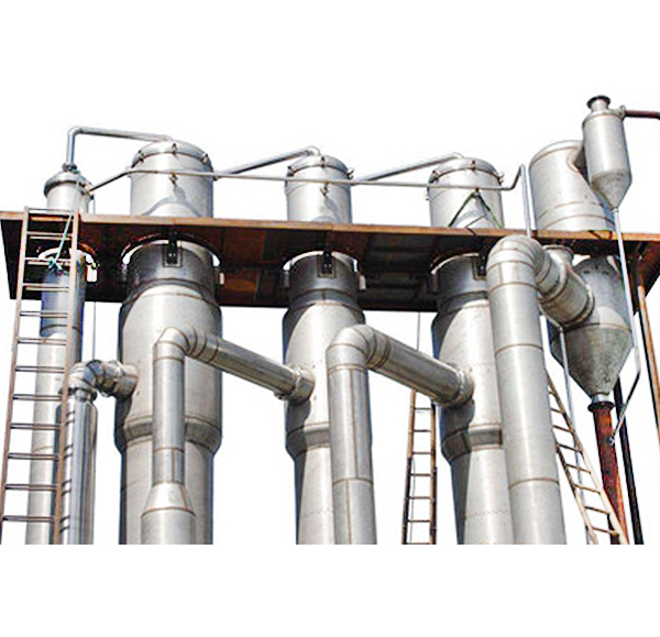 各效蒸發(fā)器、各效分離器、冷凝器、循環(huán)泵、效間泵、真空及排水系統(tǒng)、分汽缸、操作平臺、電器儀表控制柜及閥門、管路等系統(tǒng)組成。